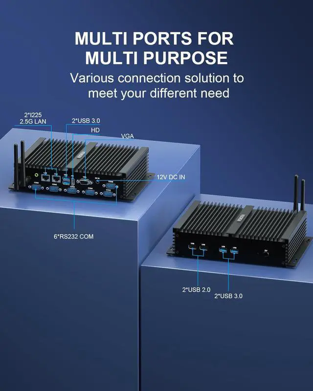 6* COM & 2* 2.5Gb LAN Fanless mini PC has 6* RS232 COM, which can stably connect various devices such as industrial printers, scanners, access control devices, CNC devices, etc. It is very suitable for industrial working environments. The 2* 2.5Gbe RJ45 LAN brings amazing network performance, stronger signals, and secure and reliable data transmission.There is also 1* 3G/4G SIM Slot. Whether used as an industrial PC or a vehicle computer/personal PC, the K4 i7 Mini PC is a good choice.