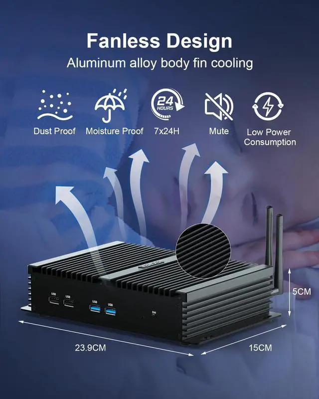 Newly upgraded 8Th Gen Industrial PC VENOEN Fanless industrial mini PC K4 is equipped with Core i7 8550U processor (4C/8T, 8MB cache, up to 4.0GHz, 15W TDP), and is pre-installed with the latest Win 11 Pro system (supports Win 10 Pro, Linux). The powerful CPU performance provides fast response capabilities, making this i7 fanless PC widely used in business offices, school education, smart parking lots, industrial manufacturing, IOT, billboards and other industries and fields.