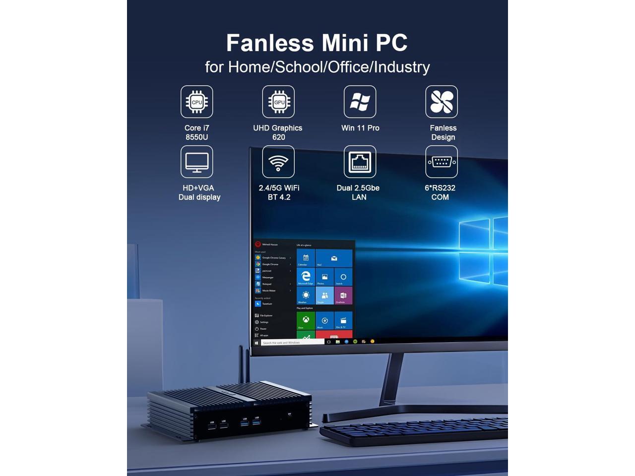 - Newly upgraded 8Th Gen Industrial PC VENOEN Fanless industrial mini PC K4 is equipped with Core i7 8550U processor (4C/8T, 8MB cache, up to 4.0GHz, 15W TDP), and is pre-installed with the latest Win 11 Pro system (supports Win 10 Pro, Linux). The powerful CPU performance provides fast response capabilities, making this i7 fanless PC widely used in business offices, school education, smart parking lots, industrial manufacturing, IOT, billboards and other industries and fields.