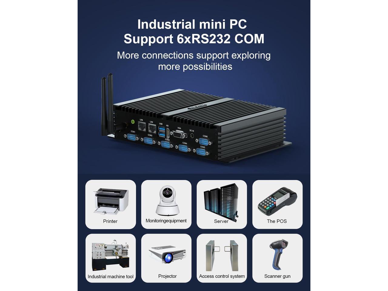 - 6* COM & 2* 2.5Gb LAN Fanless mini PC has 6* RS232 COM, which can stably connect various devices such as industrial printers, scanners, access control devices, CNC devices, etc. It is very suitable for industrial working environments. The 2* 2.5Gbe RJ45 LAN brings amazing network performance, stronger signals, and secure and reliable data transmission.There is also 1* 3G/4G SIM Slot. Whether used as an industrial PC or a vehicle computer/personal PC, the K4 i7 Mini PC is a good choice.