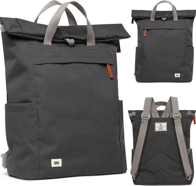 ORI LONDON Rolltop Backpack - Large Travel Backpack with Lots of Pockets for Men & Women - The Finchley, Carbon