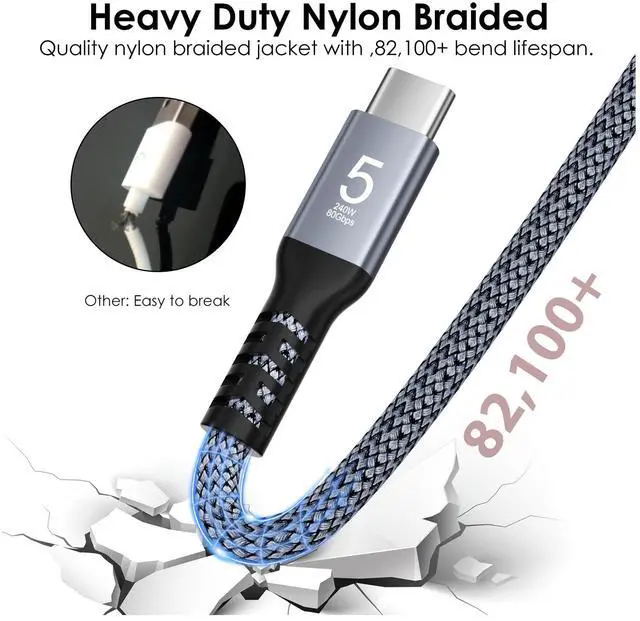 120Gbps Bandwidth: 240W for Thunderbolt 5 cable 3.3FT support 80Gbps transmission rate, 120Gbps of video bandwidth, ensuring ultra-fast data transfer and seamless connectivity between devices.