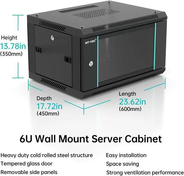 MT-VIKI 6U Wall Mount Server Cabinet Network Rack Vented Enclosure, 0.8 mm Thick, 17.7 '' Deep (450mm), for 19'' IT Equipment, Included 1pcs 10'' Depth Rack Shelf