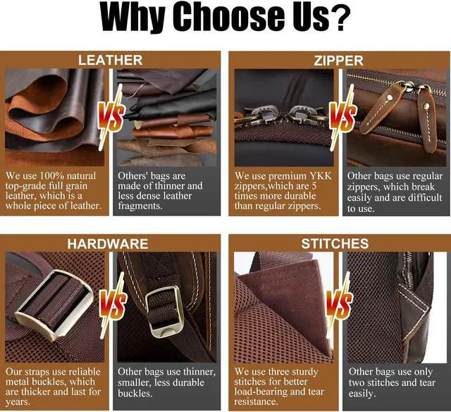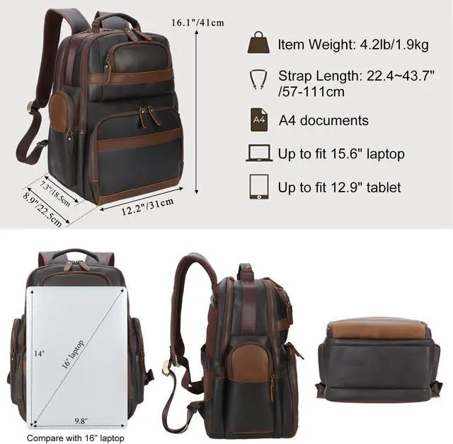 Who it suits for: ideal leather backpack for work, business, travel, casual, overnight, weekender, hiking, camping, etc.