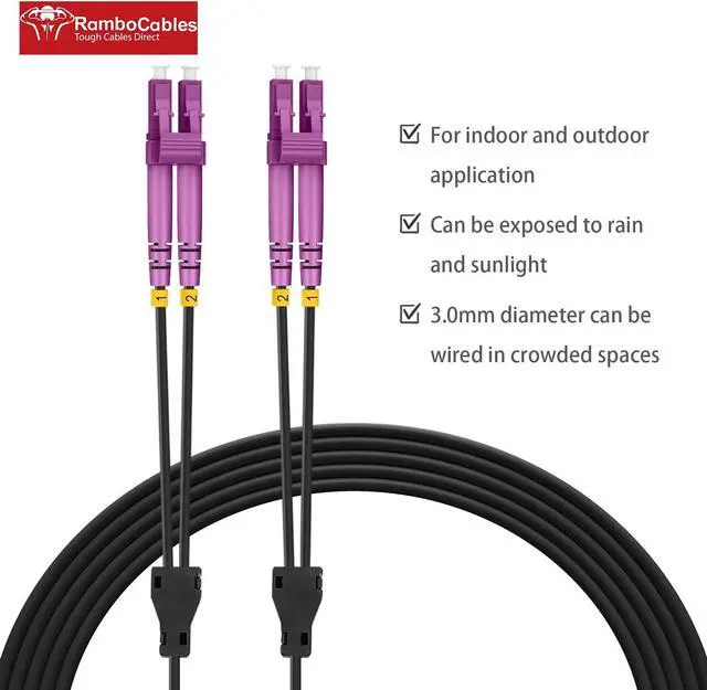 High-quality fiber optic material: Our OM4 LC to LC duplex multimode fiber optic patch cable features a 50/125m high-rated fiber optic cladding with an 850/1300nm wavelength and a 3.0mm diameter. It is suitable for use in crowded pipelines and harsh environments, making it the perfect choice for high-density network cabling.
