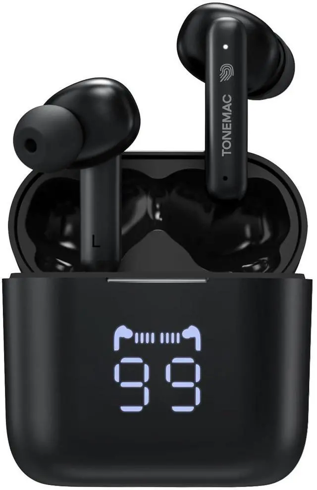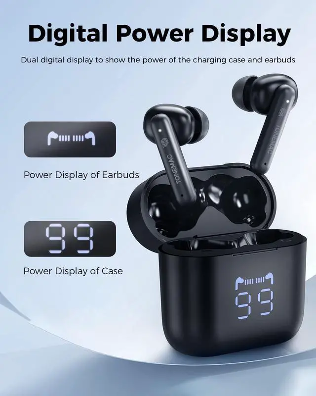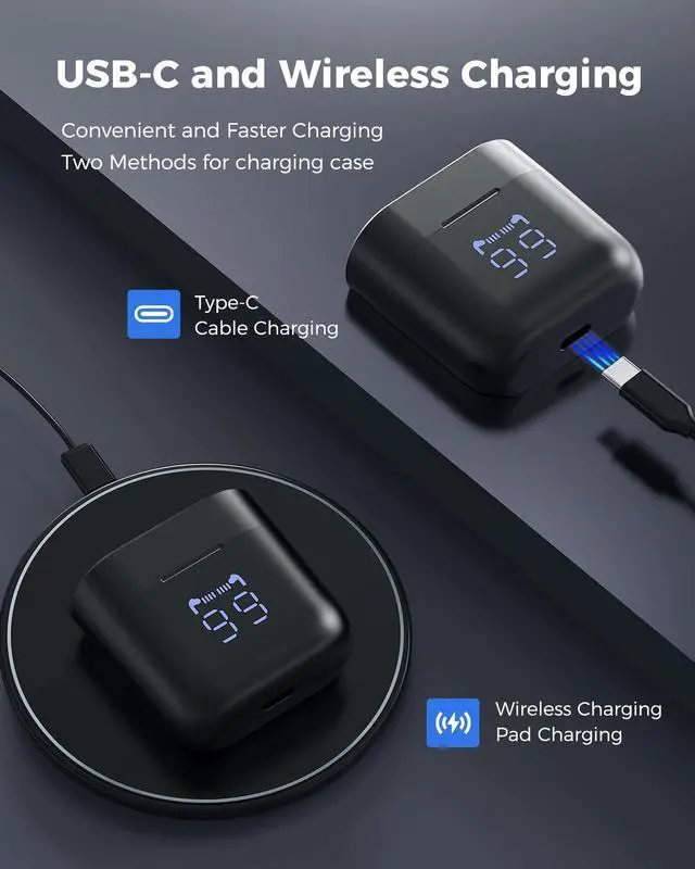 Intuitive LED Indicator: Keep track of your earbuds power levels effortlessly with the innovative LED display that shows the charging status from 1% to full charge. The cases charging progress is visually represented, while the earbuds battery life is conveniently monitored via a dynamic icon.