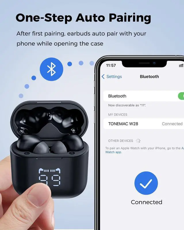 Stable Connection with Bluetooth 5.3: Equipped with the cutting-edge Bluetooth 5.3 technology, these earbuds guarantee a quick, stable link to your devices. Auto-pairing remembers your last device, making it a breeze to dive into your music or calls as soon as you flip open the case.