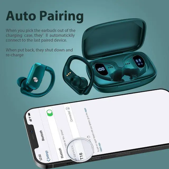 bmanl Wireless Earbuds Bluetooth Headphones 48hrs Play Back Sport Earphones with LED Display Over-Ear Buds with Earhooks Built-in Mic Headset for Workout Green