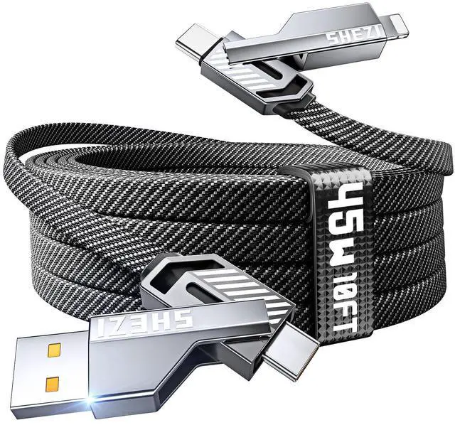 45W Fast Charging & 480mbp/s Data Transfer: 4-in-1 USB cable offers high-speed and safe charging up to 45W, enabling faster charging compared to standard cables. It can charge a Samsung S24 Ultra phone to 80% in 30 minutes (actual speed depends on your device and charger). The cable supports data transfer at 40-60MB/s, allowing a 1GB file transfer in 20 seconds. Compatible with iPhone, Samsung, tablets, Air, Mini, Pro, MacBook, and more, this cable saves time and enhances efficiency