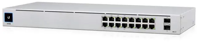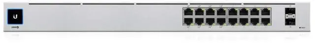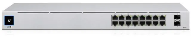 The USW-16-POE is a configurable Gigabit Layer 2 switch with sixteen Gigabit Ethernet ports including eight auto-sensing 802.3 at PoE+ ports, and two SFP ports. It provides Gigabit PoE links to your RJ45 Ethernet devices and Gigabit fiber uplink options to your enterprise network. The USW-16-POE features a 1.3" touch LCM to provide status information. With a depth of 7.9", the compact fanless design can be easily installed in a SOHO rack cabinet. Managed and configured by the UniFi Network Application with UniFi mobile app support, the USW-16-POE offers an extensive suite of advanced Layer 2 switching protocols and features, including operation mode (switching, mirroring, or aggregate) per port.