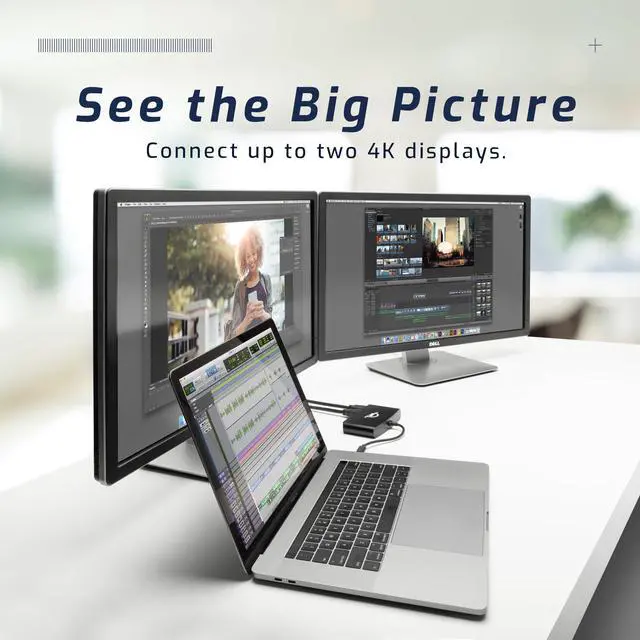Dual display support, including available resolution and refresh rates, is dependent on host hardware and drivers; Silicon M1 Pro, M1 Max, M1 Ultra Mac, M2 Pro, M3 Ultra models, Intel-based Mac models, and Thunderbo
