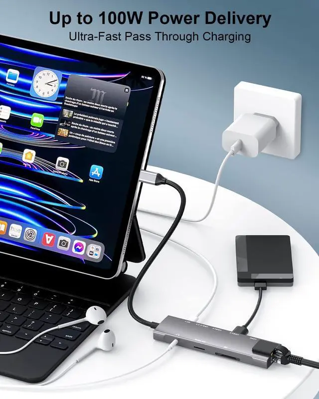 USB C Hub 9 in 1 Multiport Adapter w/Gigabit Ethernet,100W PD,4K@60Hz,2 USB 3.0,USB C 3.0 Data,SD/TF Card Reader,3.5mm Jack,Dongle Docking Station for MacBook iPad Pro iPhone 15 Steam Deck/Rog Ally