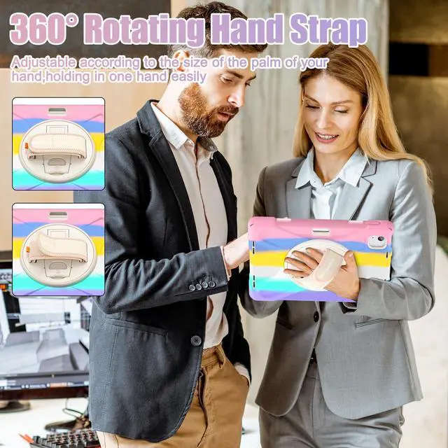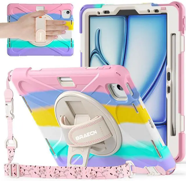 BRAECNstock Kids Case for Apple iPad Air 11 inch (M3/M2)/ Air 5th/4th Gen 10.9"/ Pro 11 inch 4th/3rd/2nd/1st Gen, Shockproof Protective with Pencil Holder, Rotating Hand Strap+Stand, Colorful Pink