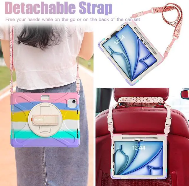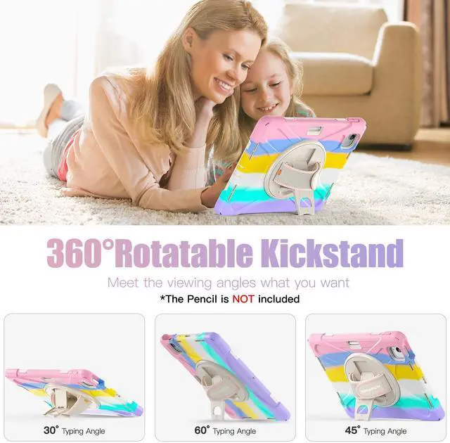 Military-Grade Protection: The iPad Air 11 inch M3/M2 Case with 4-Layer construction (hard PC front shell + anti-collision TPU+ hard PC inner shell + soft Silicone ) for anti-shock, anti-scratch, and anti-dirt defense. Kid-friendly materials (no Odor + non-Toxic) Safe for students and children