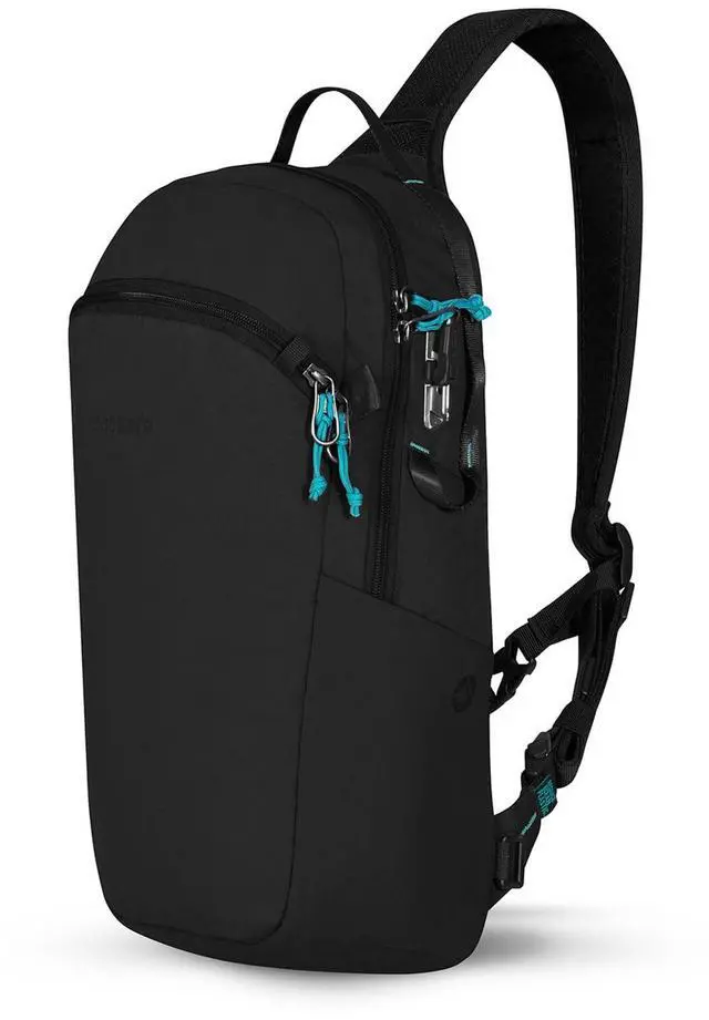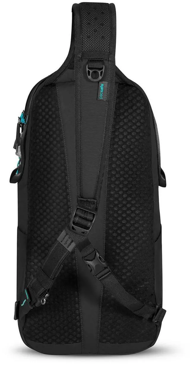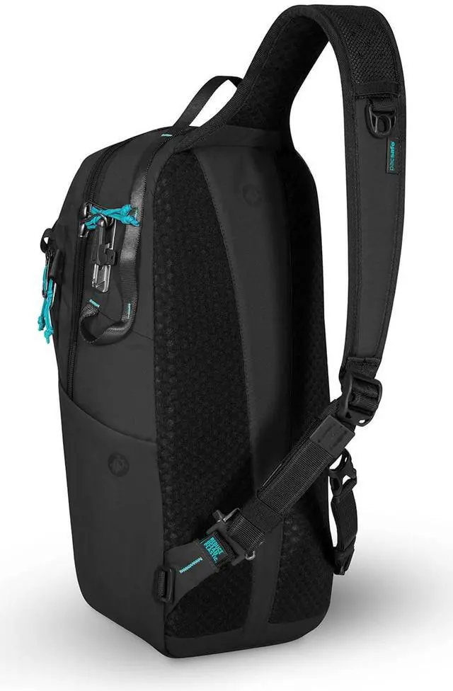 The Pacsafe ECO collection is our most sustainable collection yet by using almost 100% recycled materials and components. Get off the beaten track with this spacious sling pack that's designed for the outdoors, bike rides, traveling and more. The ergonomically-designed shoulder strap offers better support and carrying comfort. There's sufficient room to pack the essentials, including two water bottle pockets and a space for a water bladder. For extra comfort, choose which side you want the shoulder strap with our ambidextrous design. To minimize movement of the bag on your body while you're on the move, use the three-point attachment by connecting the body strap to the shoulder strap.