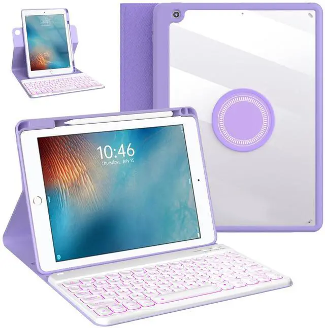 OYEEICE for iPad 6th Generation Case with Keyboard 9.7 inch - Detachable Backlit Keyboard, Upgraded Magnetic Cover with Pencil Holder for iPad Air 2nd Generation & iPad 6th/5th Gen - Purple