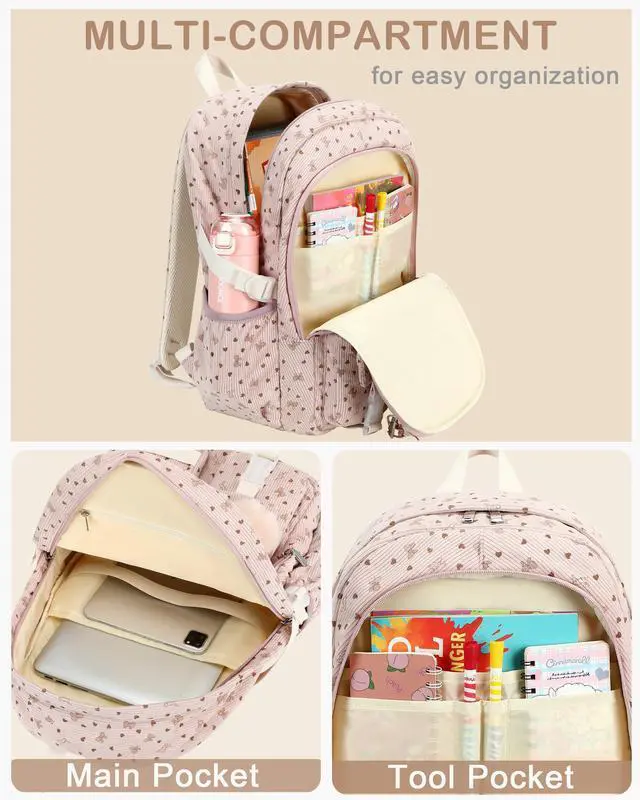 Backpacks for Girls-Safety & Comfortable : The considerate belt on the both side can create a solid base of support if youre packing a lot of stuffs on the cute back packs. The Widen and thicken durable S-shape straps is well-padded, adjustable and comfortable to carry. The luggage belt on the back of the girls rucksack can be fitted on luggage/suitcase to make your travel more c