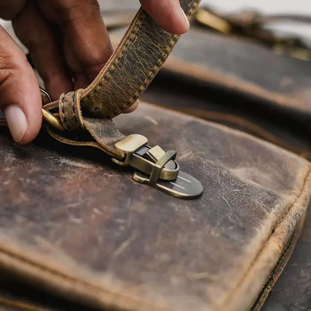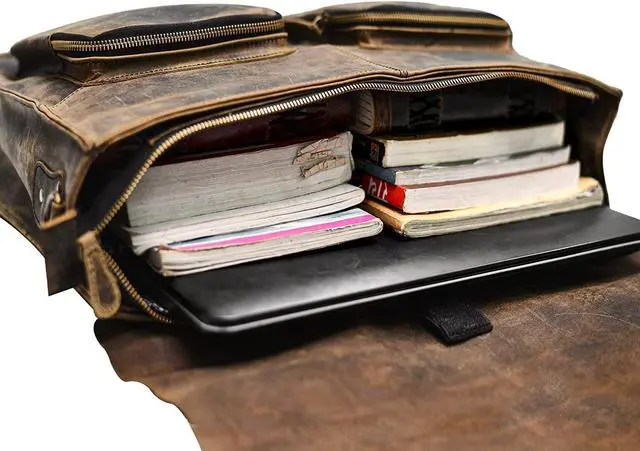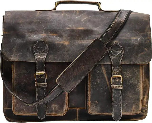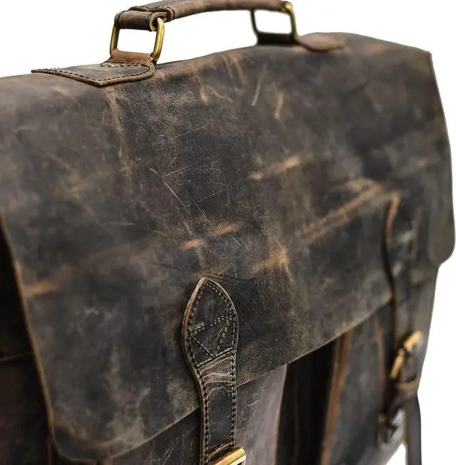 Distressed Hunter Buffalo Leather Laptop Messenger Bag This evergreen buffalo leather messenger bag is one of the most durable and sturdy laptop bags you will ever come across in the market. You can use it innumerable times for carrying your Notebook or laptop but still not fall out of love for the thus age-less bag. It can also be used for Tablets, MacBooks, and iPads. We can assure you flawless craftsmanship to ensure uniqueness and exclusivity.
