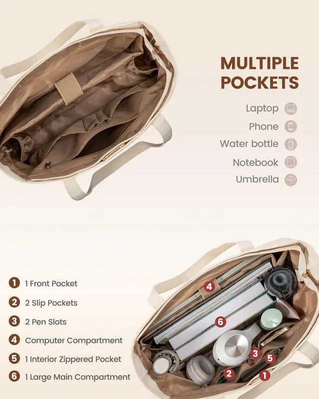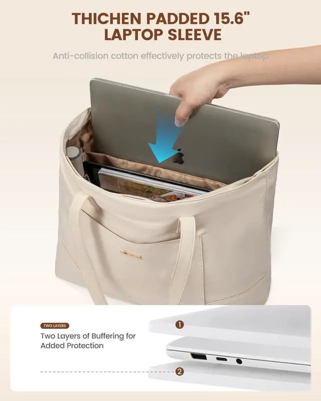 SECURE LAPTOP COMPARTMENT:Equipped with a padded laptop compartment, the work bag for women offers robust protection for your electronics. This ensures that your devices are safely stored, giving you peace of mind whether you're commuting or traveling