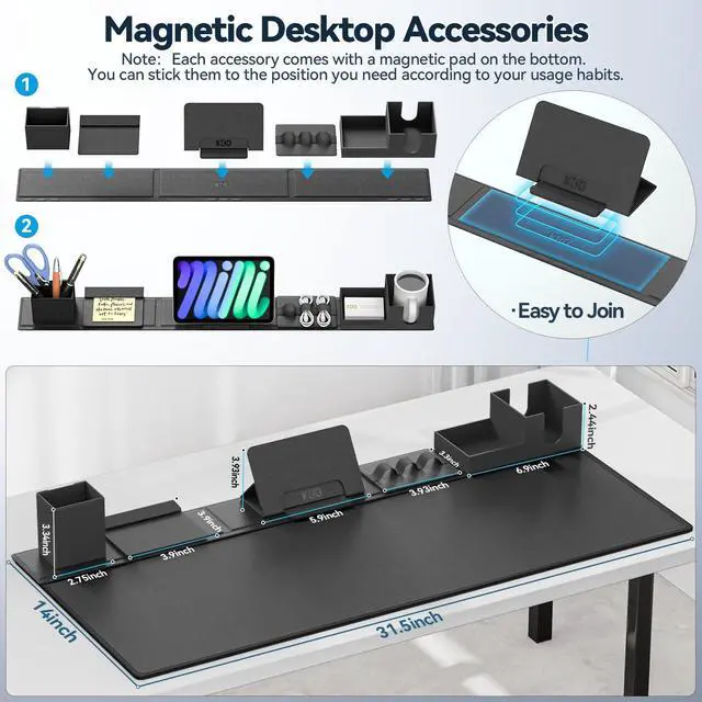 KDD Desk Pad Mat Set, 6 in 1 Mouse Mat with Magnetic Desktop Storage Accessories DIY Feature for Phone and Tablet Stand/Cup Holder/Pen Card Holder/Cable Management for Home Office Accessories