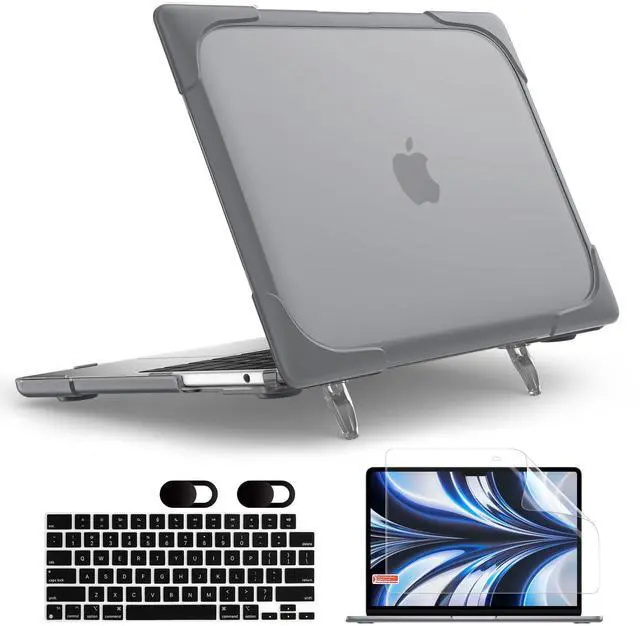 MEEgoodo for MacBook Air 13.6 inch Case 2025 2024 2022 (A3240/A3113/A2681) with M4/M3 M2, Laptop Hard Shell for MacBook Air 13", Cover with Heavy Duty Rugged Shockproof Kickstand, Grey