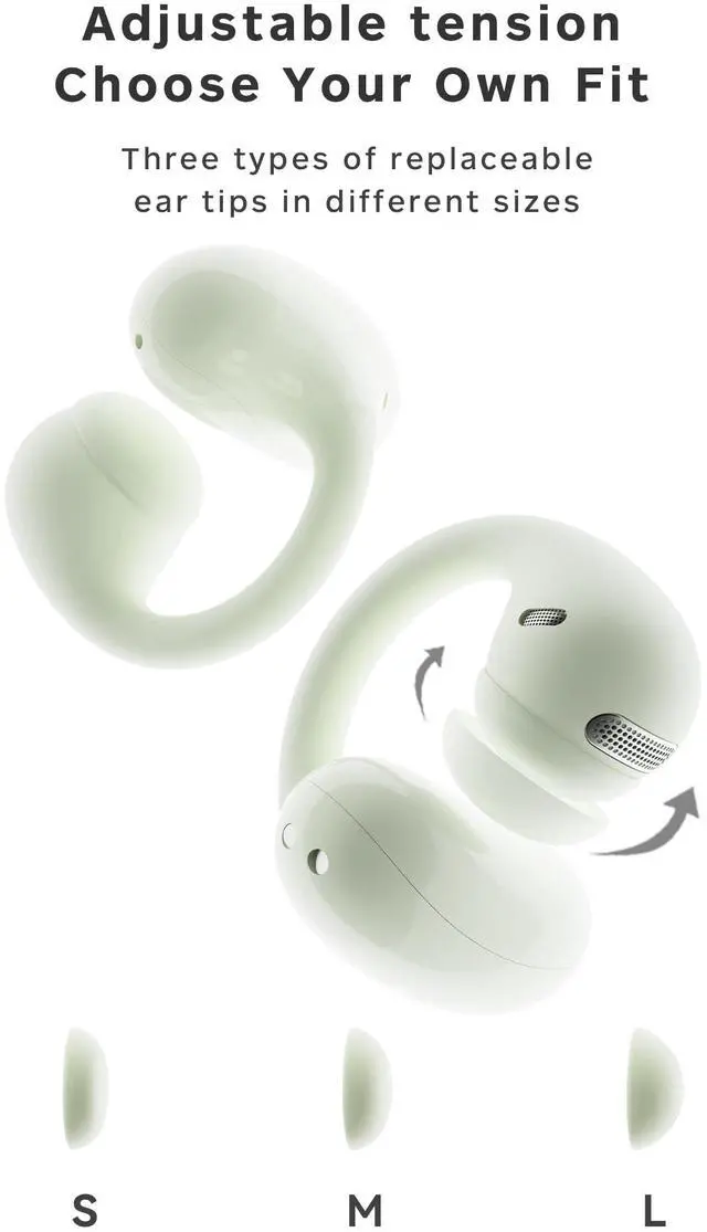 Tired of Earbuds That Fall Out During Workouts? - LIUP LP2 Luminous Quicksand Open Ear Headphones, engineered with skin-friendly silicone C-bridge and interchangeable ear tips (S/M/L), adapting to 99% of ear shapes for apain-free, secure fit even during intense workouts.