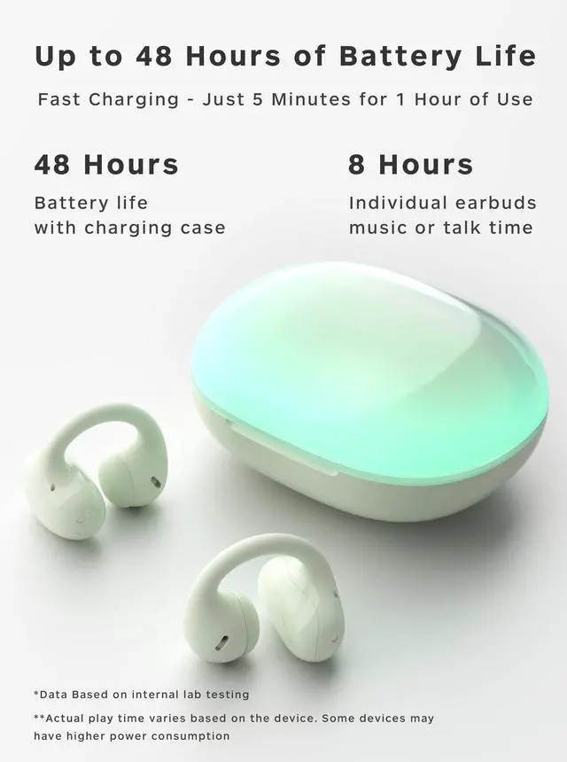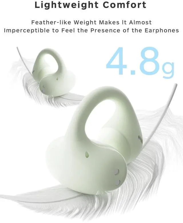MOVE WITH EASE, FEATHER LIGHT WEARING - Ultra-Lightweight (4.8g/Earbud), lighter than a quarter, ensuring you forget theyre there during runs, yoga, or commutes. IPX4 waterproof, withstands heavy sweat and sudden rain ideal for marathons, hiking, and gym sessions.