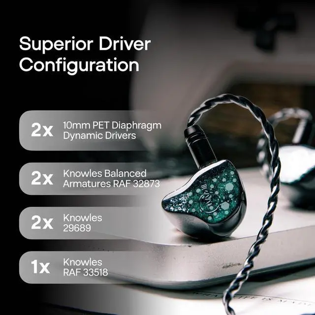Linsoul ZiiGaat Arcanis in Ear Monitor, Professional 2DD+5BA Hybrid IEM Earphone + Tripowin Zonie IEM Cable, 16 Core Silver Plated Earphone Upgraded Cords(2pin 0.78mm, 3.5mm)(Moss)