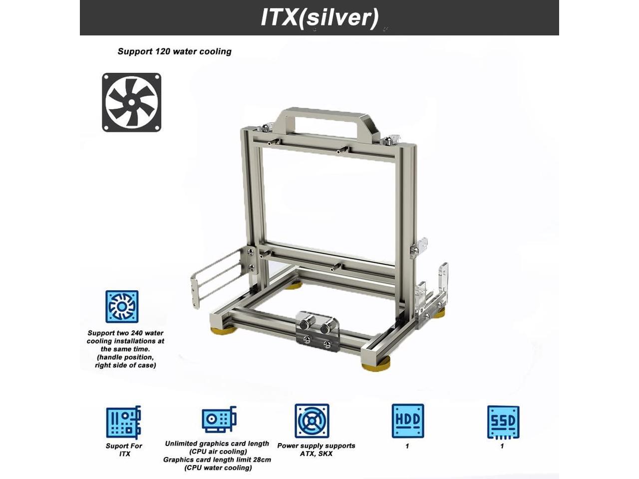 - Mini ITX Size: 24*24*20cm (height without handle).The product only includes open case accessories, and does not include other products outside the open case. The open case frame needs to be installed by itself.