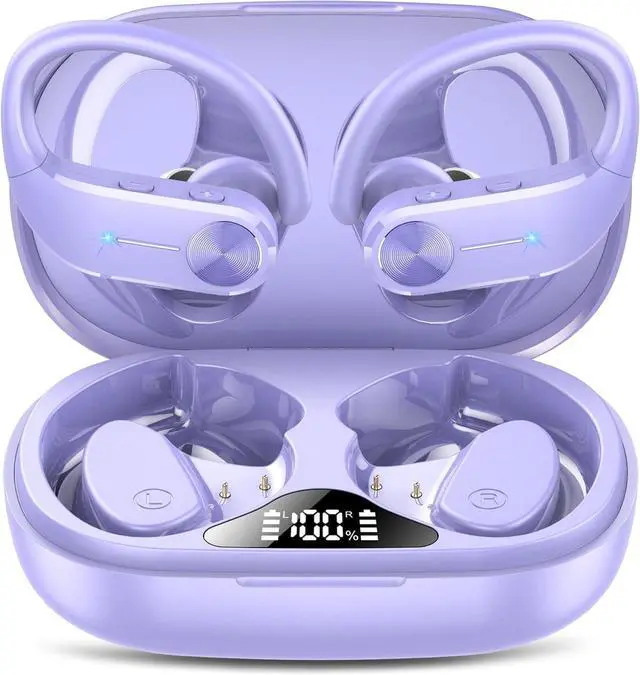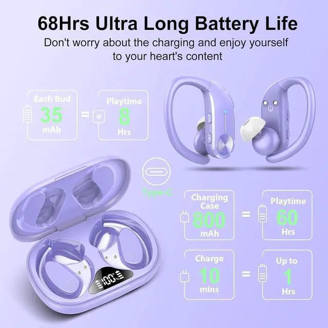 Ear buds Wireless Bluetooth Earbuds Sport 2024 NEW Bluetooth 5.3 Headphones 68H Playtime with LED Display Powerful Bass Over Ear Earphones with Earhooks IP8 Waterproof for Gym/Running/Workout