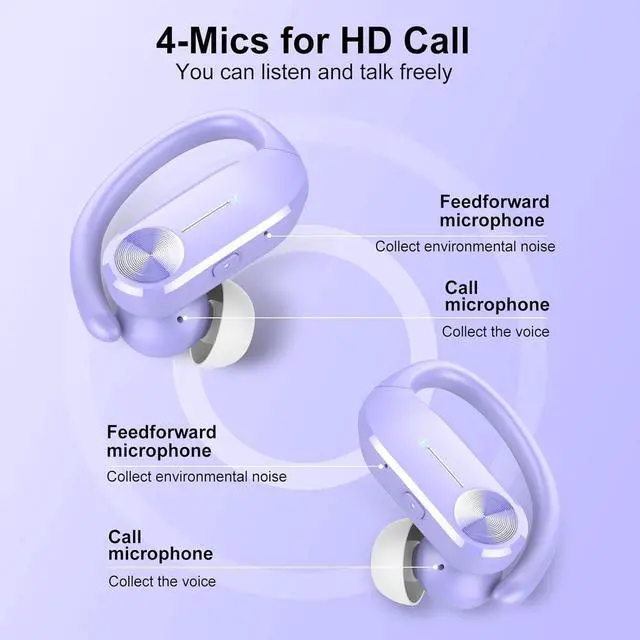 HIGH SOUND QUALITY AND CLEAR CALLS: The Bluetooth earbuds are equipped with 13.44 mm dual-layer drivers that deliver powerful bass (up to 16 Hz), clear mid-range and bright highs (up to 20 kHz). The built-in microphone features ENC noise cancellation to isolate your voice f