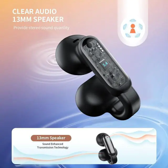 Crystal Clear Sound Built with high-performance audio drivers, these wireless earbuds deliver transparent and crisp sound quality, with 13mm mega-speakers for a dynamic listening experience. Perfect for music, podcasts, and voice calls.