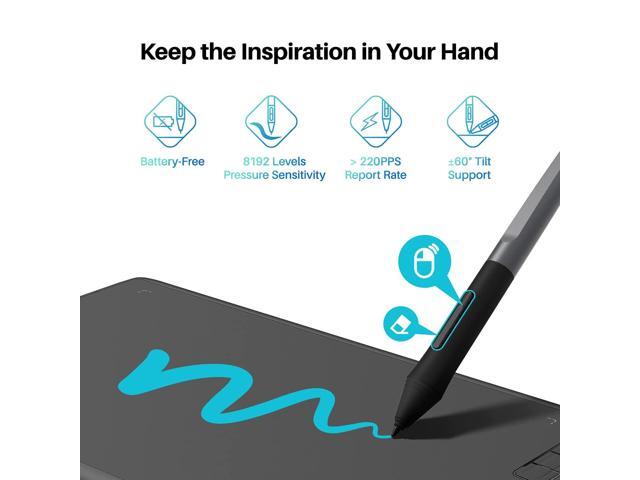 - ±60° Tilt Function - H610X is equipped with ±60° tilt function to provide smoother and more natural lines when you choose different brushes, making your creation more realistic
