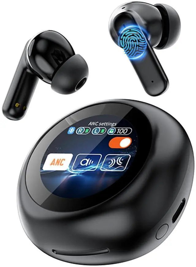 Wireless Earbuds, Touch Screen Bluetooth 5.4 Ear Buds, ACN/ENC Noise Cancelling Earphones, IPX5 Waterproof In Ear HiFi Sound Stereo Wireless Heardphones for Laptop Pad Android/iOS Phones (Black)