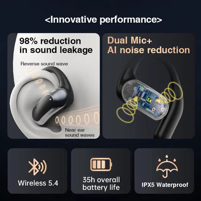 Lightweight & Stable Fit Our Over the Ear Earbuds open air weigh are lighter, made of premium soft silicone material, keeps running relax, the open ear design helps you achieve the painless and harmless as the open ear headphones with mic is no need to plug into the ear canal.With ergonomic surround