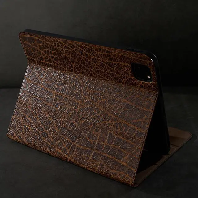 Gexmil Case for iPad Pro 11 Inch,4th/3rd/2nd/1st Generation(2022/2021/2020/2018) Genuine Leather Cover Anti Fingerprint/Slip,Cowhide Folio Cover Auto Sleep/Wake with Adjustable Stand,Buffalo Pattern