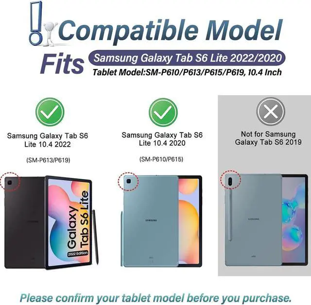 Compatibility ModelExclusively designed for Samsung Galaxy Tab S6 Lite 10.4 inch Model SM-P610/P613/P615/P619 2022/2020 Release Tablet. It will NOT work for any other model device. Please kindly check before purchase.