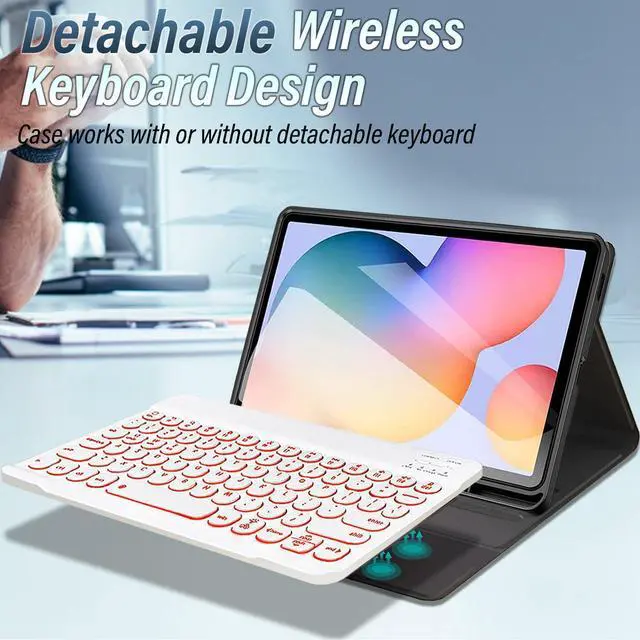 Detachable Wireless Keyboard CaseThe magnetic Bluetooth Tab S6 Lite keyboard and case are separated, magnetically attached, the keyboard can be removed from the case. The well-made woven fabric case gives you a comfortable touch feeling.