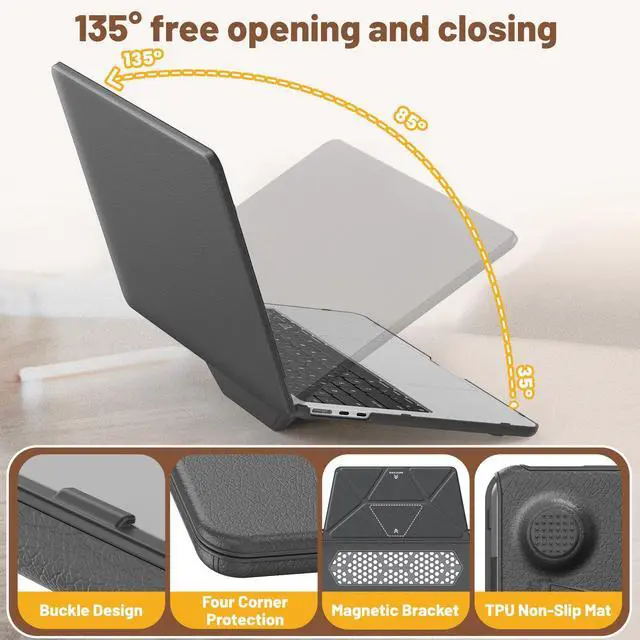 [Ergonomic Magnetic Kickstand for Enhanced Usability] - Integrated Foldable Magnetic stand in our MacBook Air 13.6 inch case delivers optimal viewing and typing angles, transforming work, study, and leisure time into more comfortable experiences. Say goodbye to strain and embrace convenience with every use