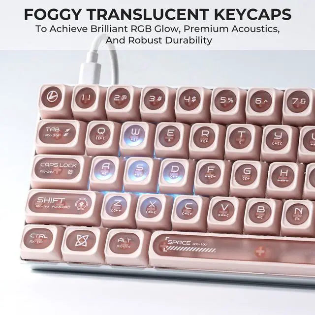 Unique Frosted Translucent EffectTop layer semi-transparency creates a soft, diffused RGB glow, while the lower layer blocks light bleed. Achieves a striking layered illumination effect unmatched by standard shine-through keycaps.