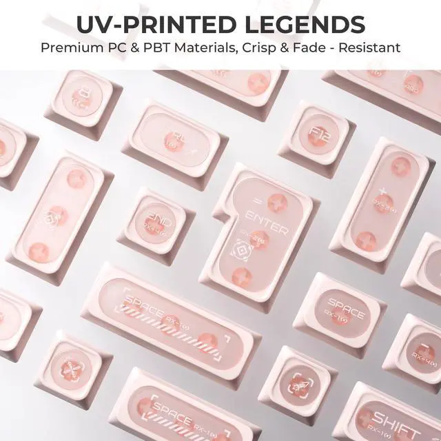Dual-Layer PC+PBT Material Combines the scratch-resistant durability of PBT with the translucent elegance of polycarbonate (PC). Matte texture ensures a premium grip, while the material resists shine and discoloration over time.