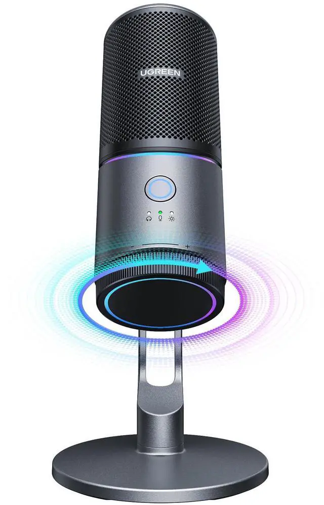 UGREEN Microphone for PC, USB Mic with RGB Lights, Mute Button, 24bit/96kHz, Cardioid Polar Pattern, Volume Control, Condenser Microphone for Streaming, Gaming, Podcasting, Recording, Laptop, PS5