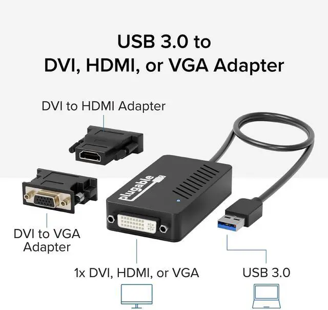 Plugable USB 3.0 to DVI/VGA/HDMI Video Graphics Adapter for Multiple Monitors up to 2048x1152 Supports Windows 11, 10, 8.1, 7, XP, and Mac 10.14 +