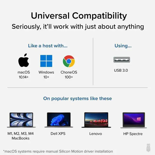Windows, ChromeOS, and macOS Compatibility: Drivers for Windows 11 / 10 / 8.1 / 7 / XP are available via Win
