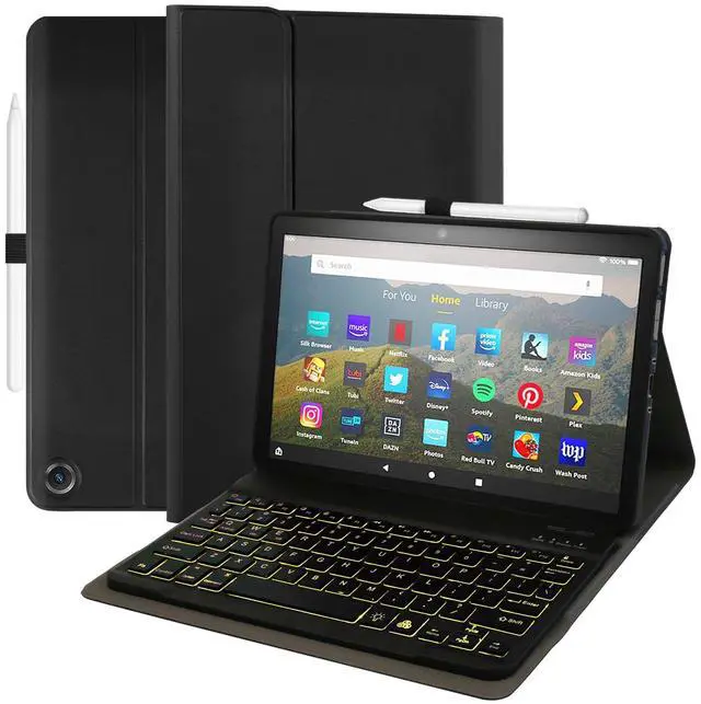 WITH 7 COLORS BACKLIT KEYBOARD: There is 7 vibrant and gorgeous colors of this wireless keyboard; It's really practical to use in the dark. And it is bluetooth, you can use it without the tablet being in the case. The backlit keyboard is also removable and detachable