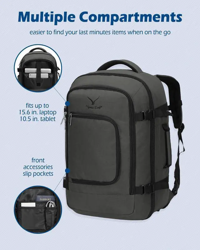 Hynes Eagle Travel Backpack 40L Flight Approved Carry on Backpack Men Large Cabin Weekender Laptop Backpack Women 15.6 inches Grey 2023