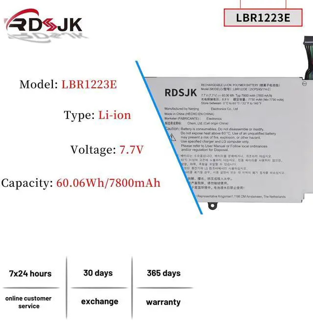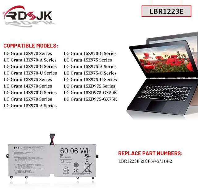 LBR1223E LBS1224E Laptop Battery for LG Gram 13Z970 13Z 970 13Z975 14Z970 15Z970 15Z975 15ZD975 13Z970-A 13Z970-G 13Z970-U 14Z970-G 15Z970-A 15Z970-G 15Z975-A 15Z975-G 15Z975-U Series 7.7V 60.06W h