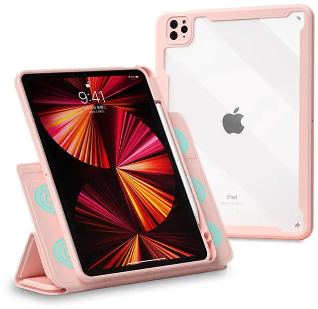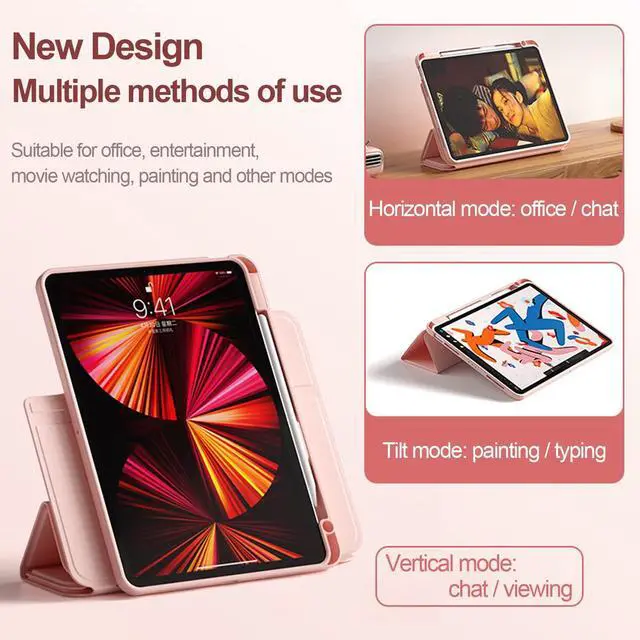 Magnetic protective cover for iPad can offer reliable supports at many different angles for reading, video chatting, writing and painting, watching videos, drawing and more.