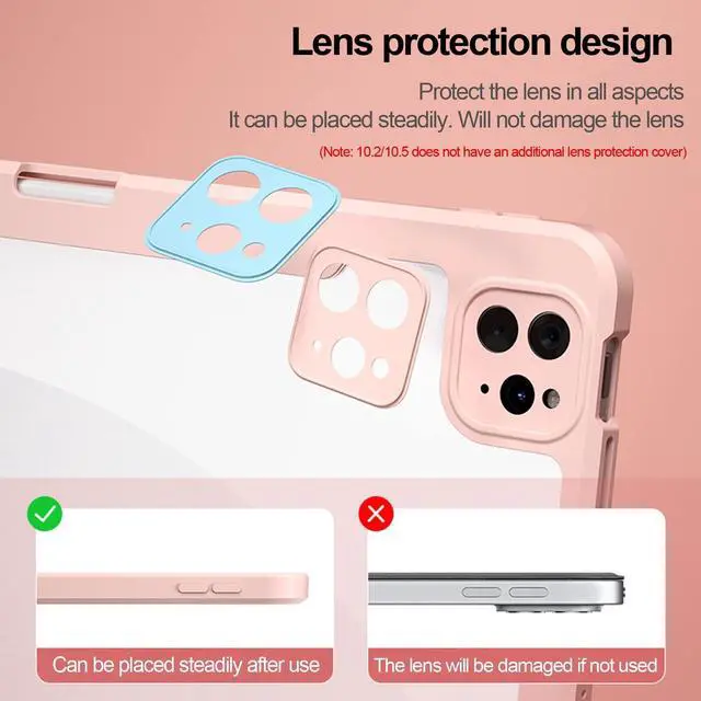 Premium PU outer case with strong magnetic offers sturdy support and reliable protection for the screen when closed, the inner case made of premium acrylic is strong and durable, preventing scratch and damage to the back of your iPad.
