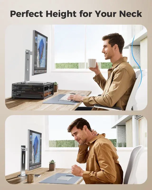 Ergonomic Monitor Stand Riser- Raise your monitor by 4.61", helping you to keep a good sitting posture and prevent the possible stress on neck, back and shoulder during your long time work.